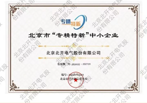 報(bào)佳音,傳喜訊。經(jīng)北京市經(jīng)濟(jì)和信息化局認(rèn)定,北京北開(kāi)電氣股份有限公司順利通過(guò)“北京市專精特新中小企業(yè)”、“北京市創(chuàng)新型中小企業(yè)”認(rèn)定。
